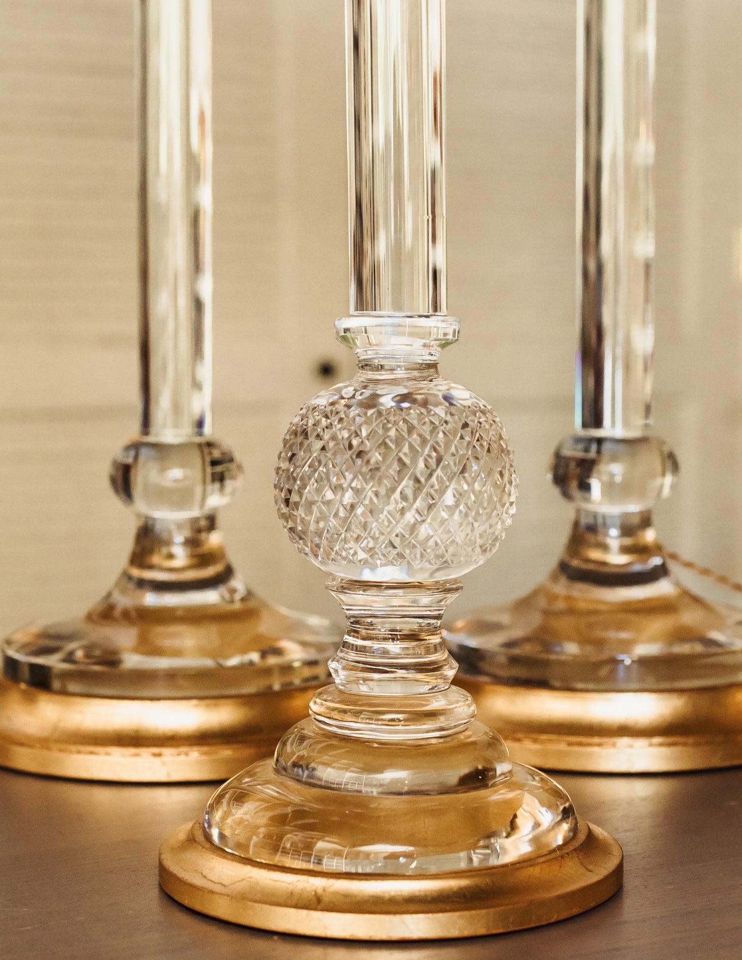 Elegant Glass Candlestick Lamps with Custom Gilt Bases